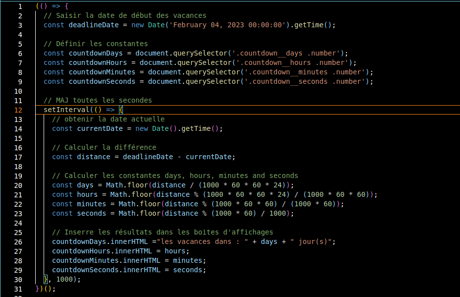 Aujourd’hui, on peut presque tout faire en JavaScript. Voici un aperçu : un compte à rebours jusqu'aux prochaines vacances